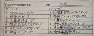 3月に皆さんにプロ野球の順位予想をしてもらいましたが。