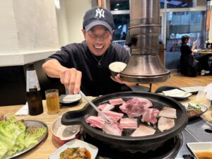 韓国出身のJちゃんにお肉を切って貰ったり♪