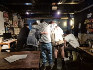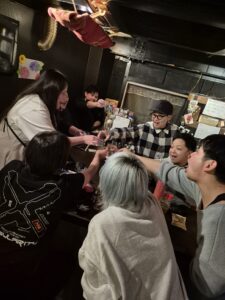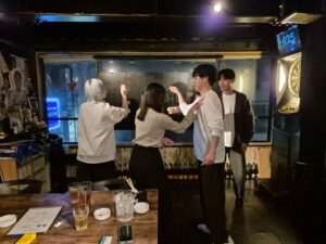 チーム戦で闘って負けてはショット飲んだり☆